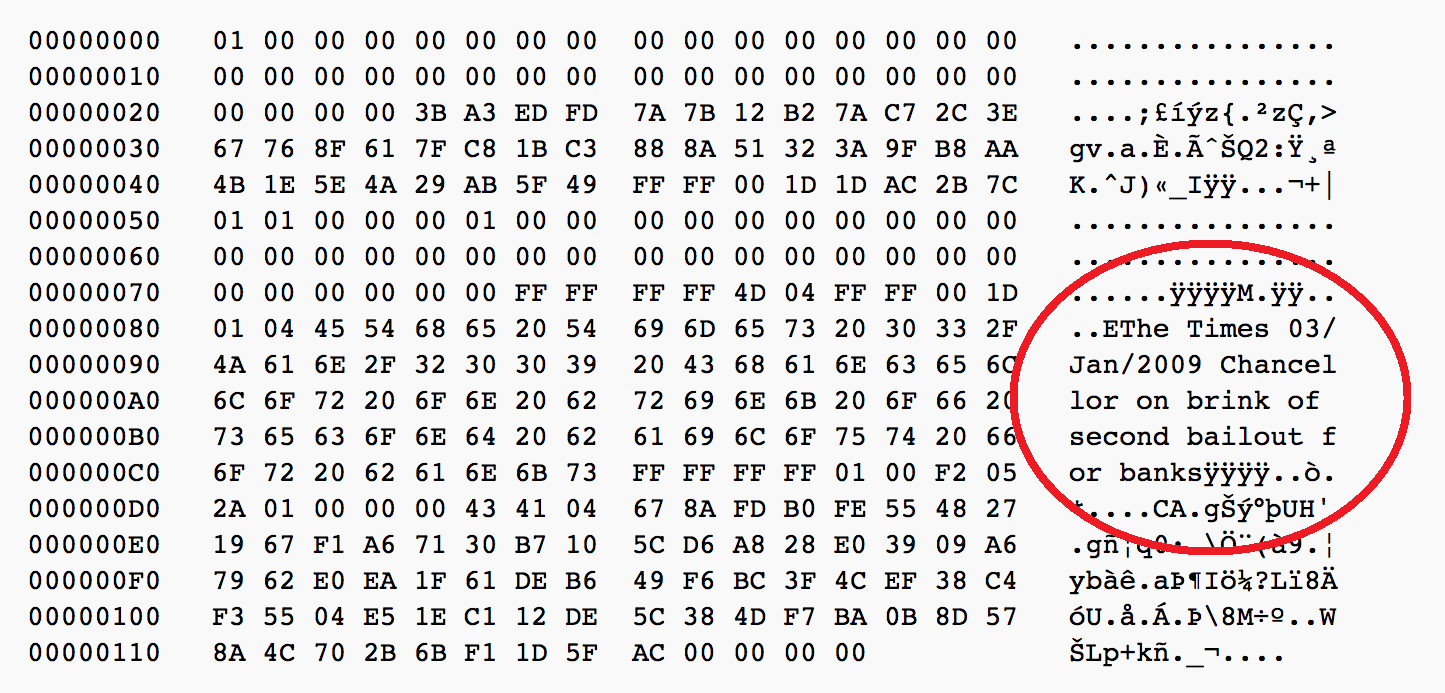 Bitcoin es algo real, pero de origen desconocido y su misión realmente no se conoce, puesto que su creador o creadores están en el anonimato. Linus Torvalds, creador del sistema operativo Linux, es el último que se ha añadido a la cada vez más extensa lista de supuestos creadores. Si analizamos el mensaje insertado en el bloque génesis de bitcoin podemos deducir que la creación de bitcoin persigue un fin algo anarquista y busca crear un sistema económico donde los bancos y los gobiernos estén al margen.